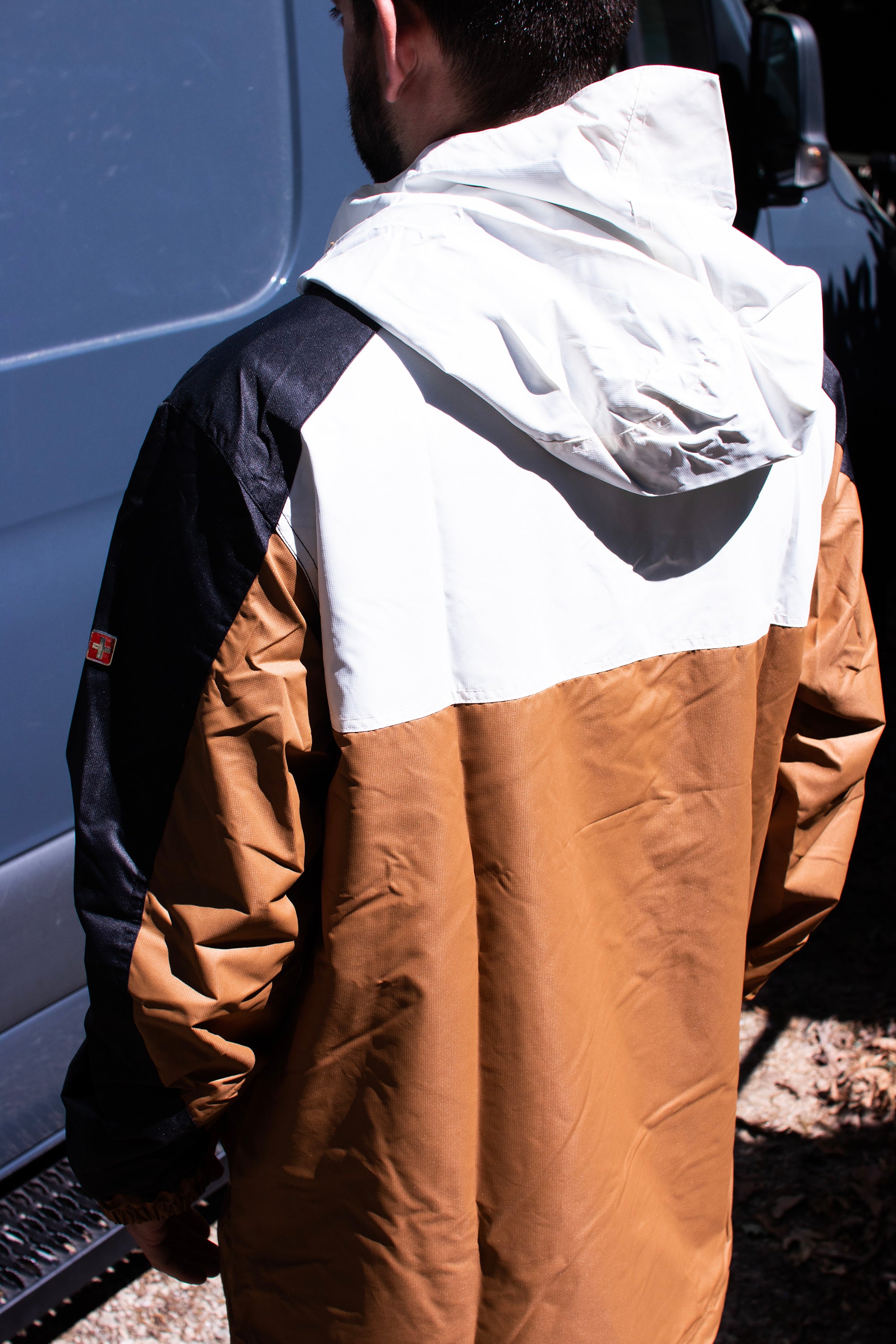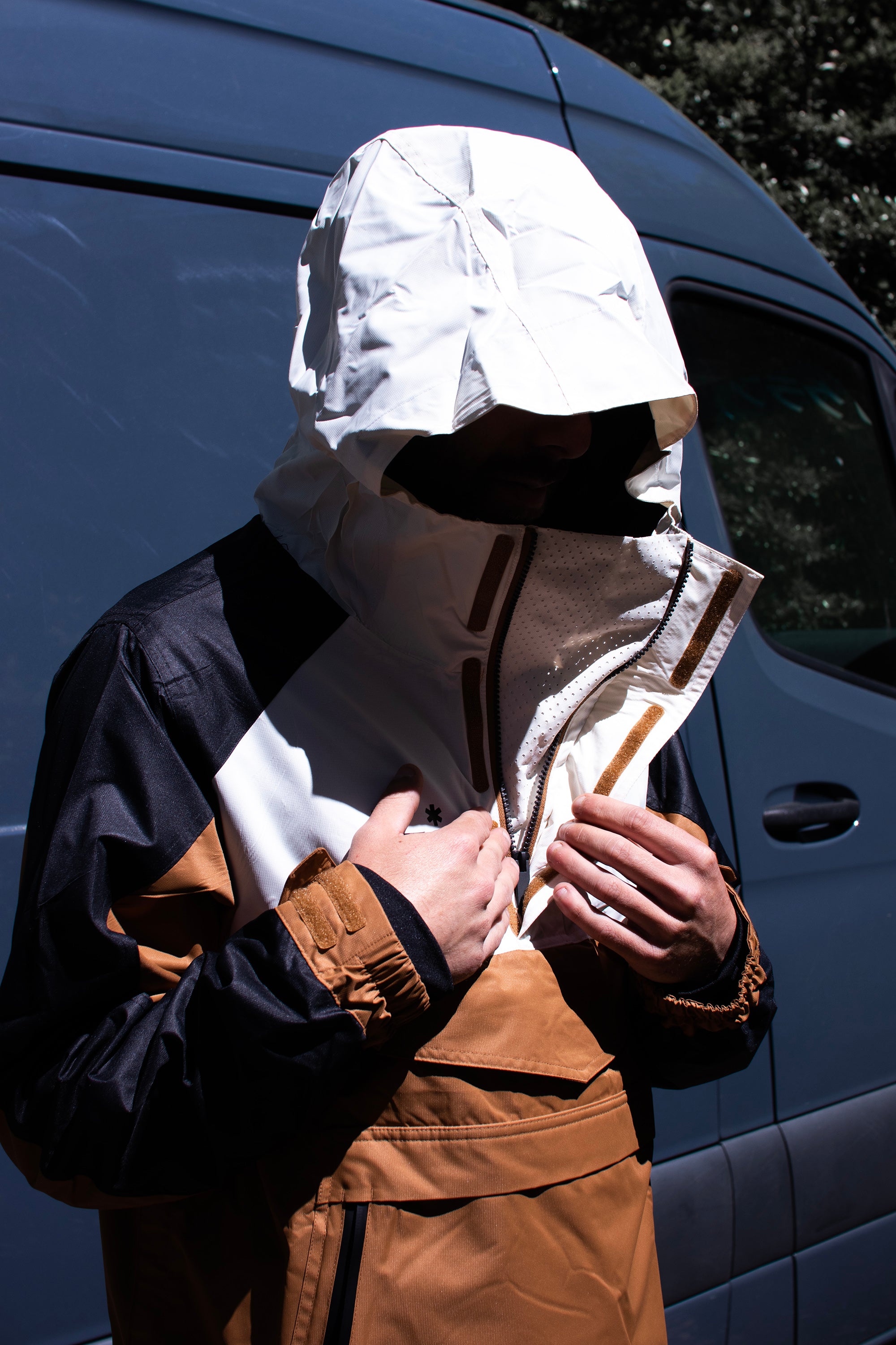 - Collar: Attached hood